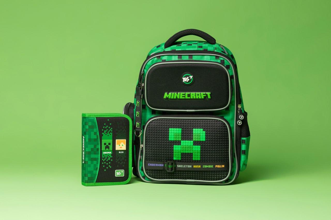 Кожен набір у стилі Minecraft включає пенал, сумку для взуття та рюкзак. Всі елементи оформлені у впізнаваному піксельному стилі гри, що напевно порадує маленьких фанатів цього популярного всесвіту. З таким набором кожен школяр відчує себе героєм свого улюбленого світу.